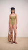 A shirred swimsuit in all-over green gingham print. Features a wide scoop neckline and adjustable straps, each with slight colour variation depending on the area of the print, for a unique touch.