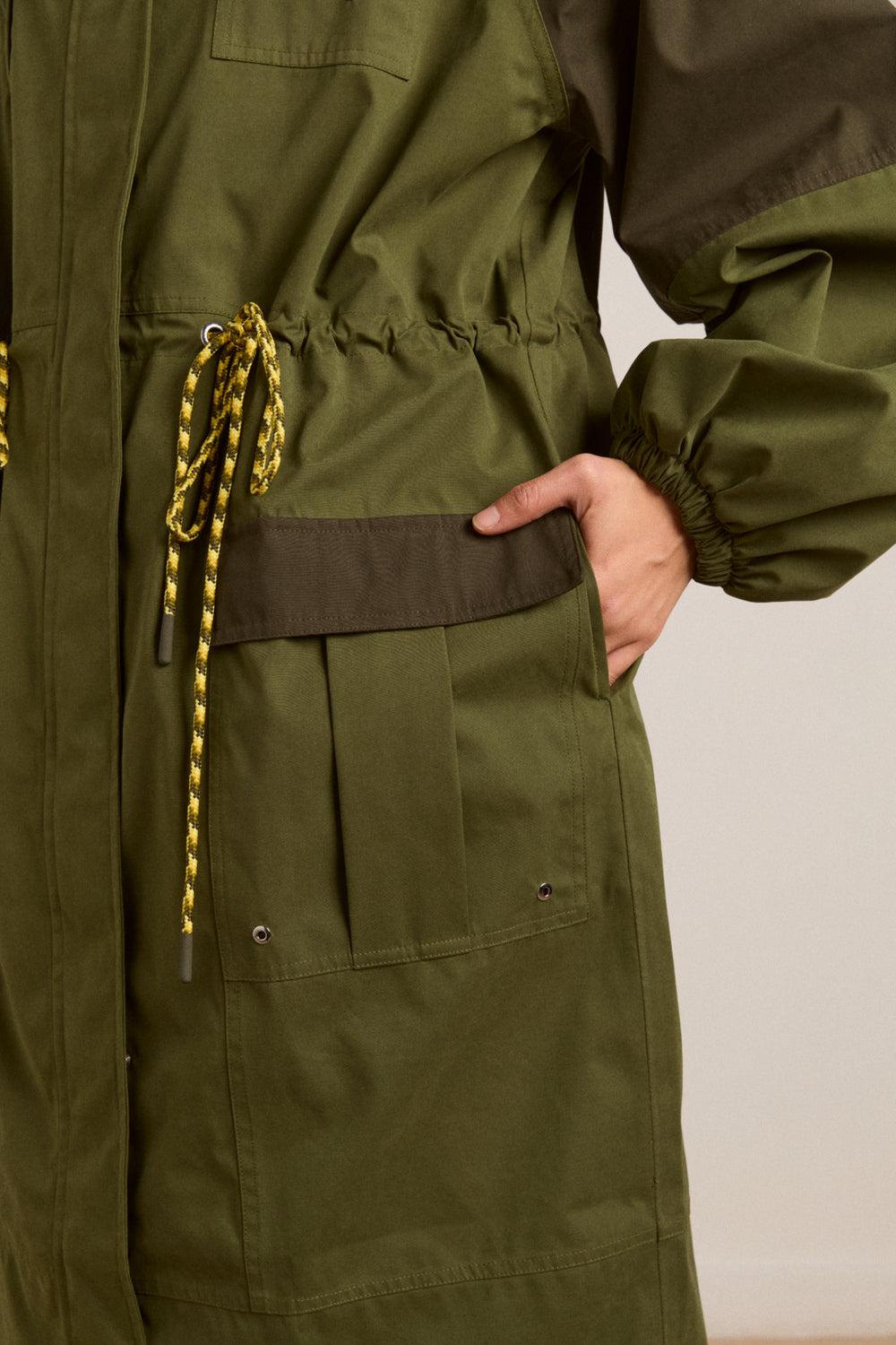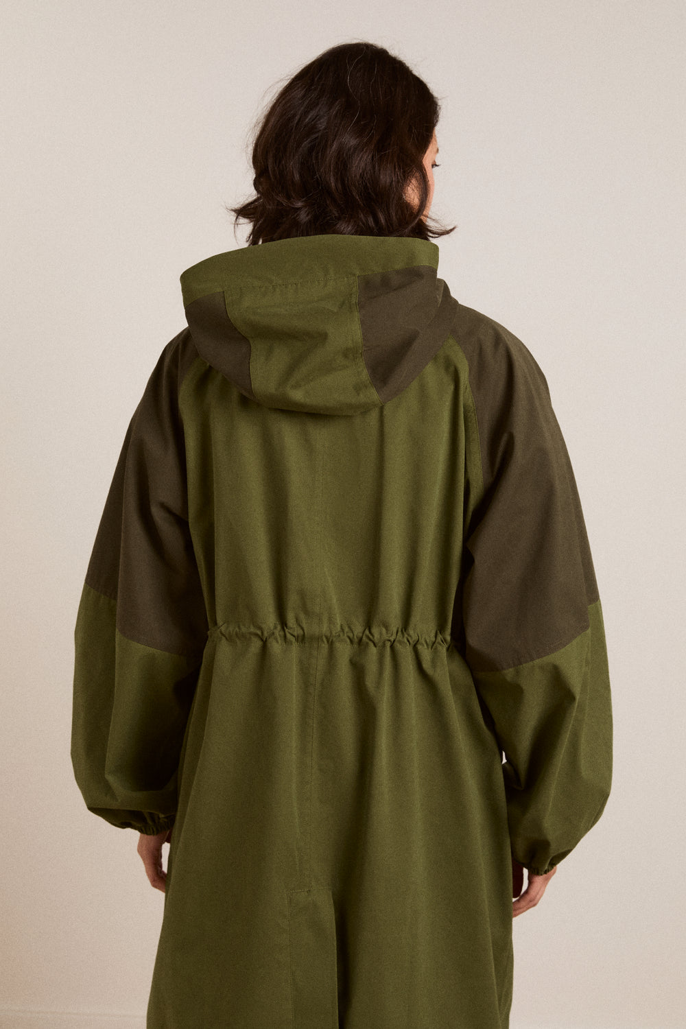 The Logan Raincoat in Forest is a fully waterproof layer designed for all-weather wear. Featuring a zip front with branded poppers, DM chest embroidery and elasticated cuffs. With an adjustable waist and hood, balloon sleeves, and an oversized fit, it’s both practical and effortlessly modern. Finished with side and chest pockets plus a back vent for easy movement.