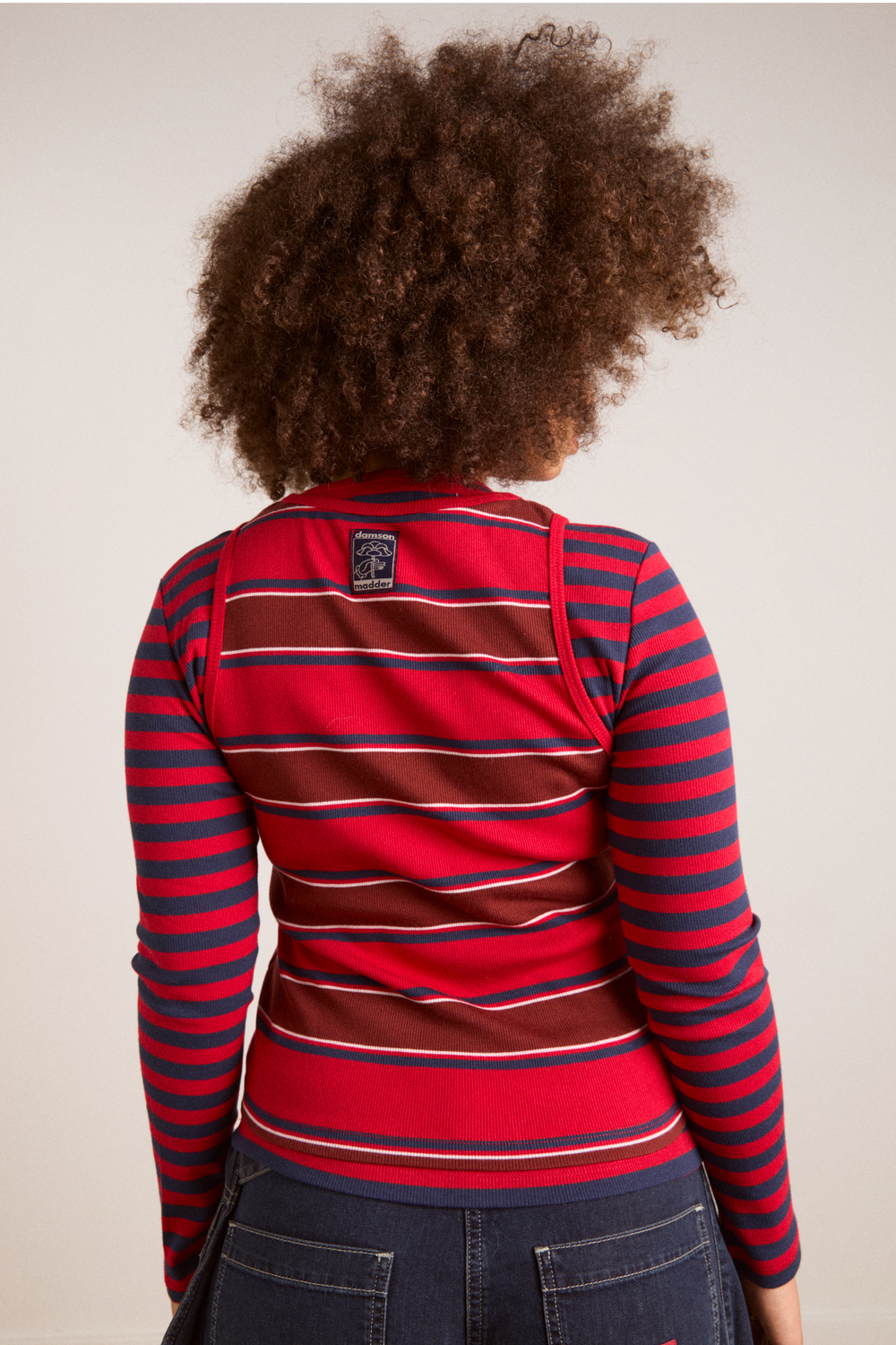 This layered piece gives you styling freedom with a detachable tank and long sleeve combo. Wear it all together for a cool, coordinated look or separately to switch up your outfit. Finished with a crew neckline, subtle DM embroidery on the sleeve layer, and a branded patch on the tank for that signature touch. True to size- choose your usual fit. Designed in London. Made in Türkiye.