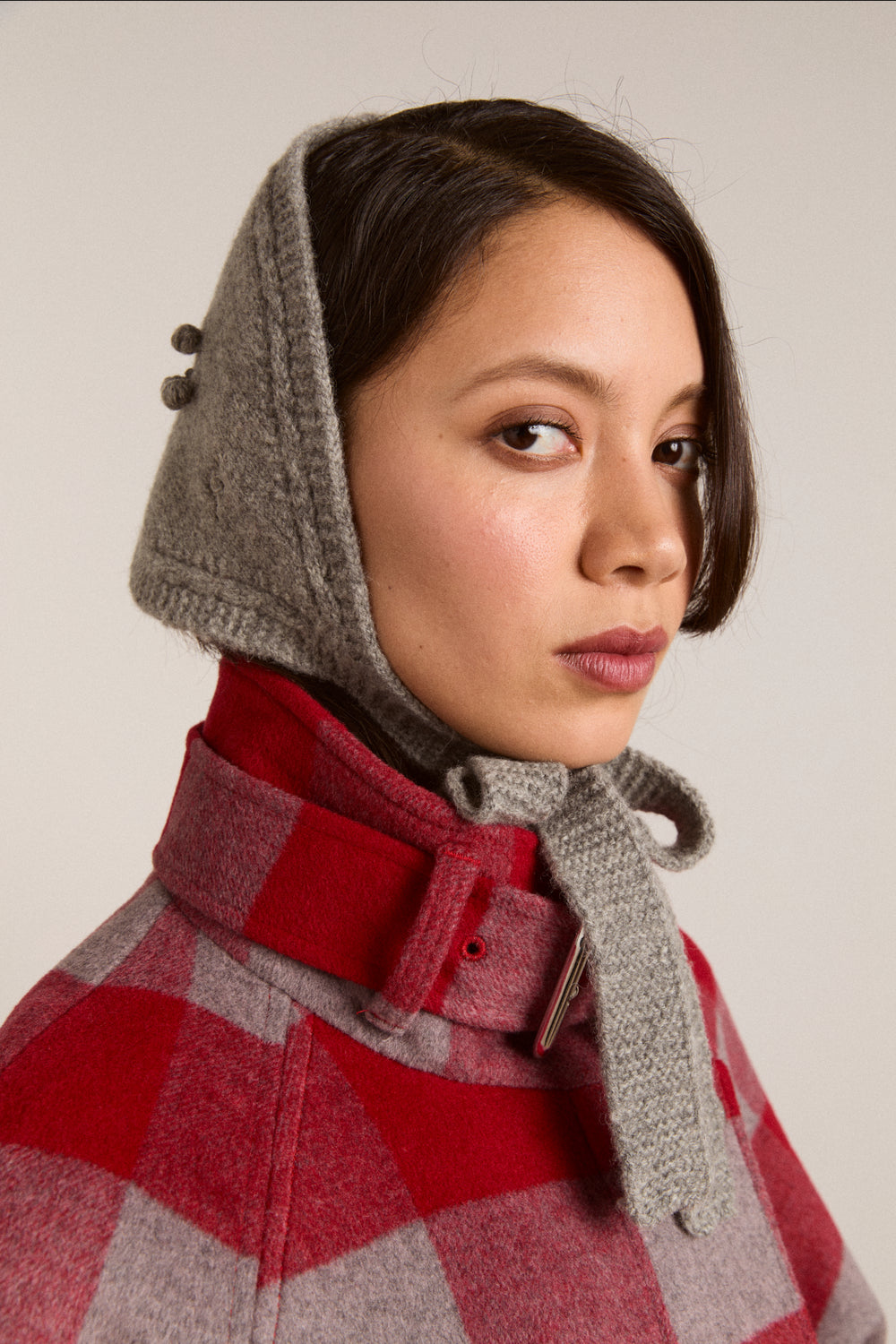 This sweet cable-knit style features bobble details, tonal grey DM embroidery and ties under the chin for a snug fit. Made from a soft, responsible blend of wool, mohair and recycled fibres. Designed in London.