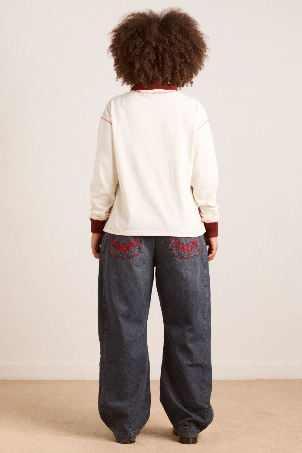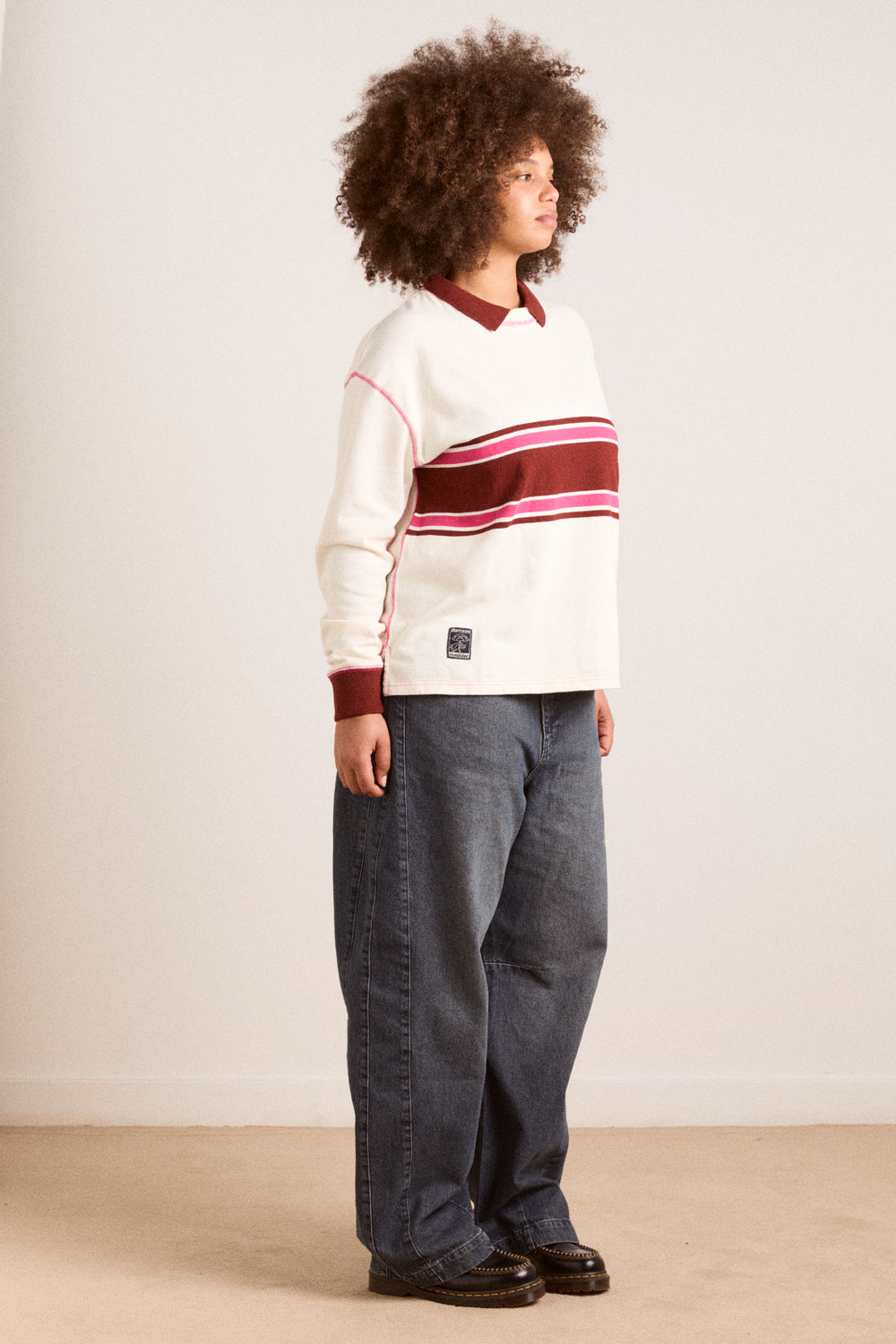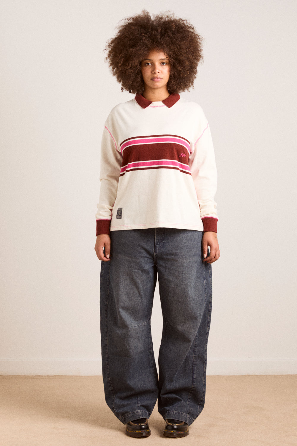 Your new go-to rugby, but make it refined. The Olina comes in an ecru placement stripe with contrast rib trims for that throw-on-and-go charm. Cut in a relaxed fit from soft organic cotton, it’s the kind of top you reach for again and again.