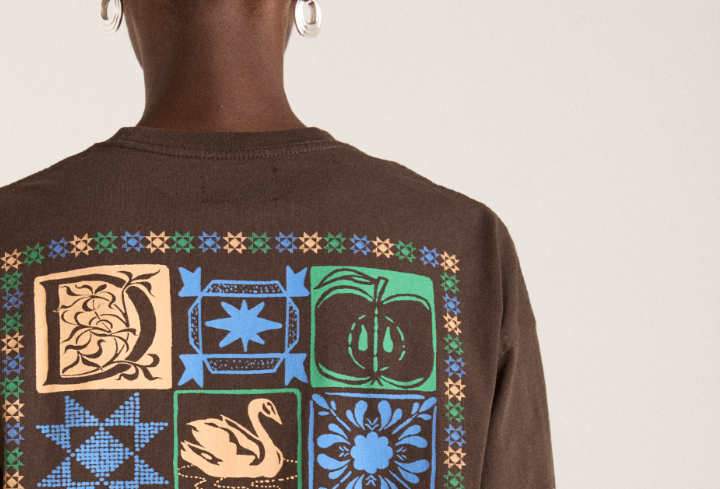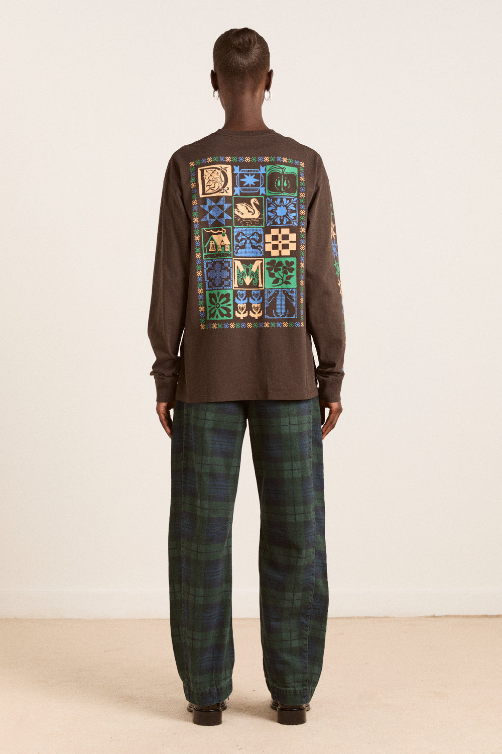 Crafted from 100% organic cotton, our Patchwork Quilt T is the go-to piece you'll reach for every day. Designed with a relaxed, oversized fit, this top features thoughtfully placed graphic prints on the front and back for a playful touch.